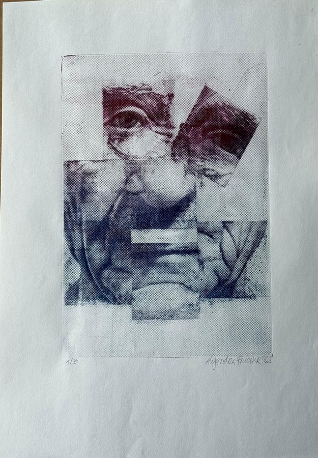 Esta serie de obras gráficas, basadas en la técnica de photoplate, quieren mostrar la idea de la desintegración de la mente en la demencia de Alzheimer.