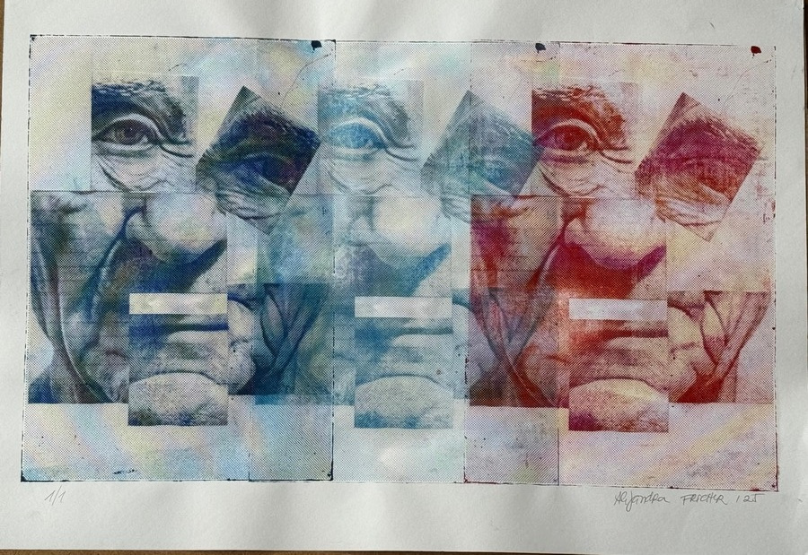 This series of graphic works, based on the photoplate technique, aims to show the idea of the disintegration of the mind in Alzheimer's dementia.